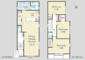 | 間取詳細 | (1F)LDK20.1、(2F)洋8、(2F)洋6、(2F)洋6 |