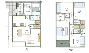 | 間取詳細 | (1F)LDK18.1、(2F)洋7、(2F)洋5.2、(2F)洋5.2、(2F)洋5 |