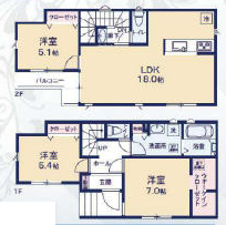 (1F)洋7、(1F)洋5.4、(2F)LDK18、(2F)洋5.1 |