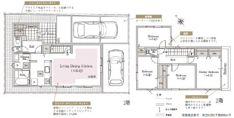 ■共通設備・仕様:24時間換気システム、1坪タイプシステムバス、浴室換気乾燥機付き、システムキッチン、シャンプードレッサー、シャワートイレ、TVモニター付きインターホン、ペアガラスサッシ、基礎パッキン工法、床下収納庫付き