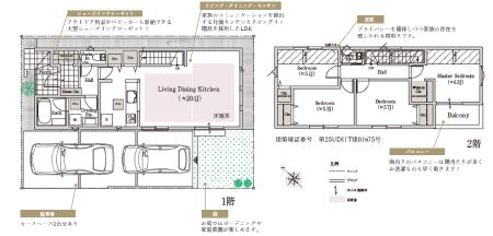 ■共通設備・仕様:24時間換気システム、1坪タイプシステムバス、浴室換気乾燥機付き、システムキッチン、シャンプードレッサー、シャワートイレ、TVモニター付きインターホン、ペアガラスサッシ、基礎パッキン工法、床下収納庫付き